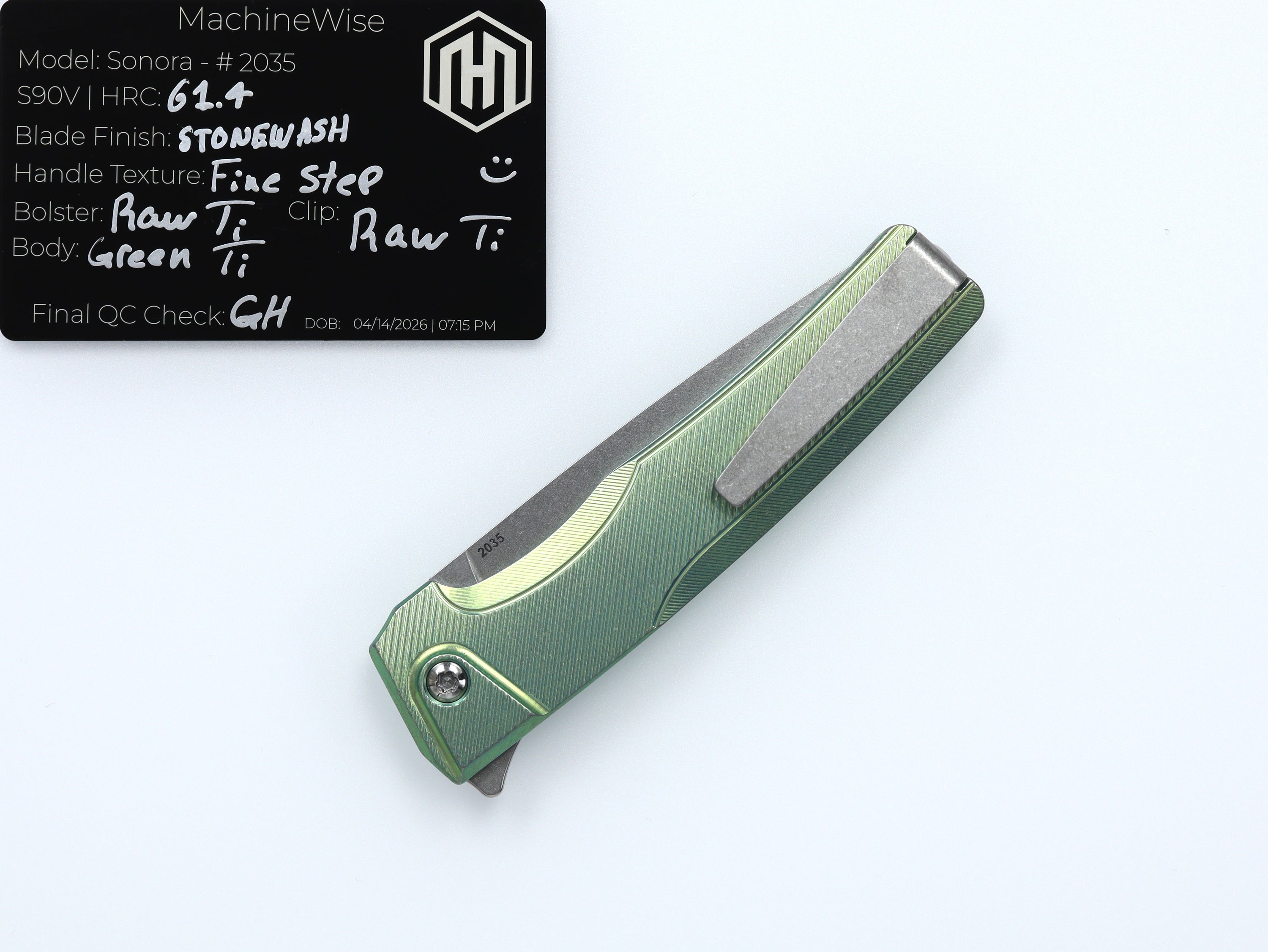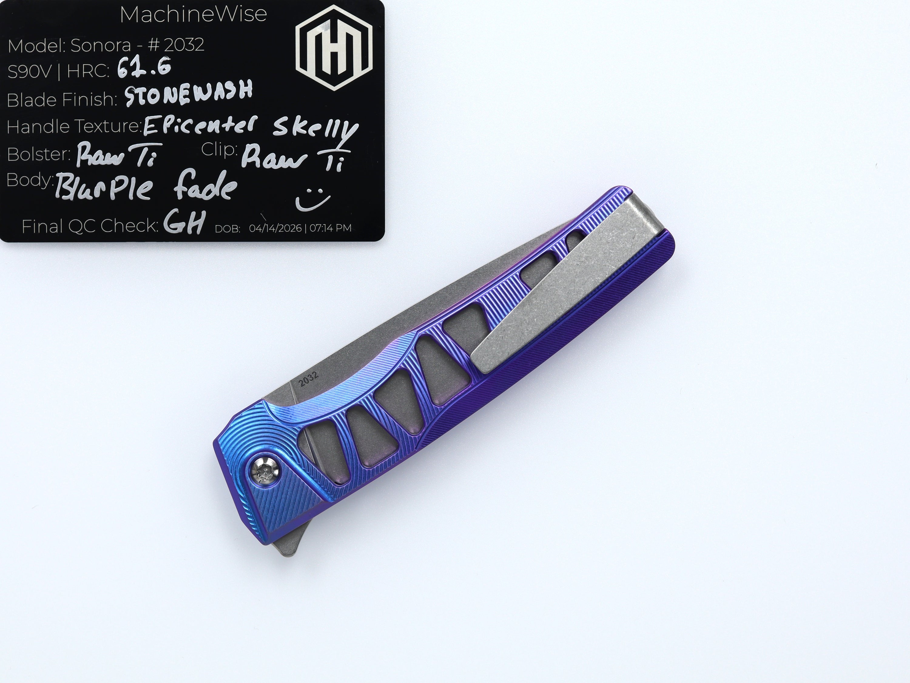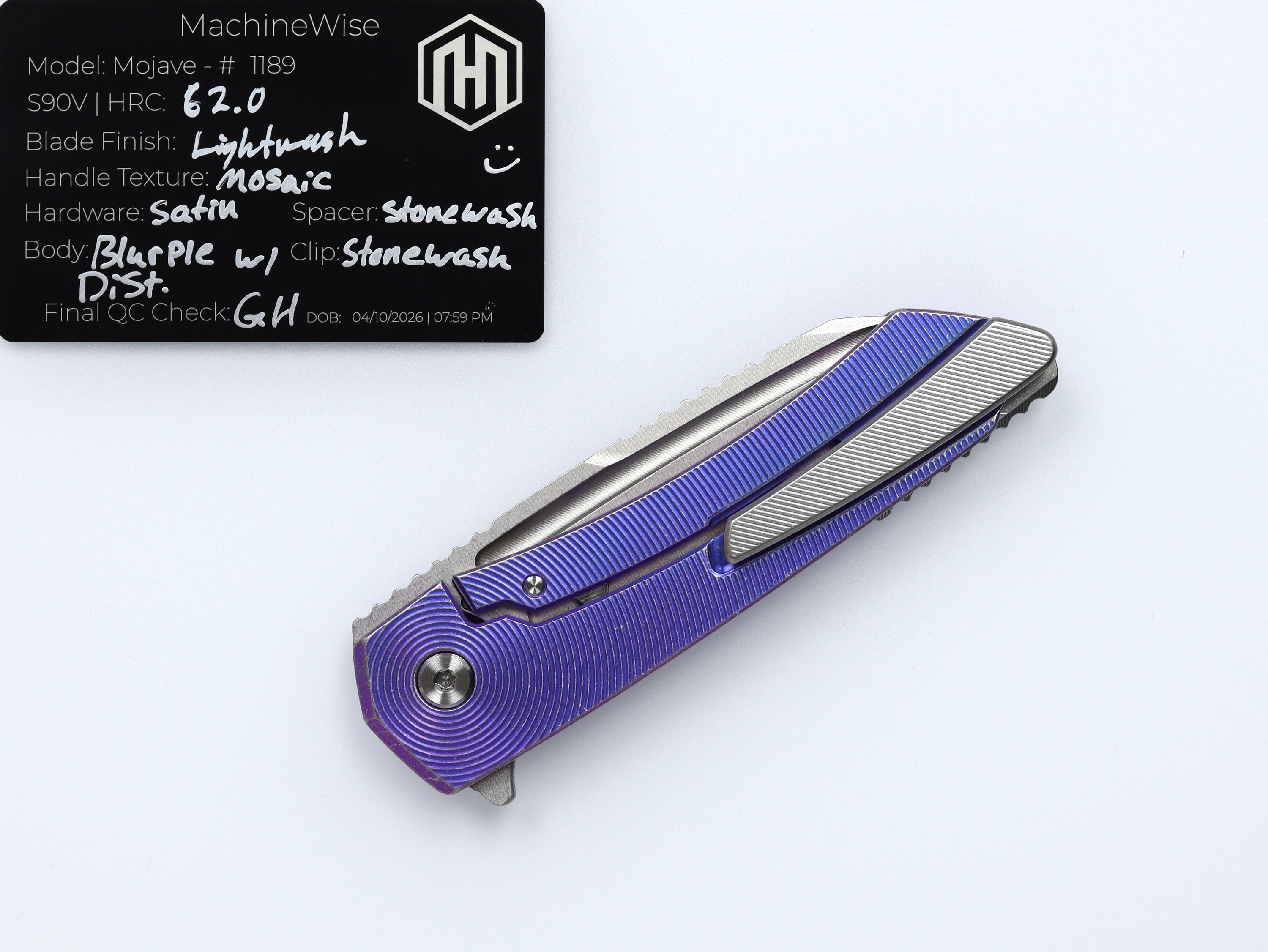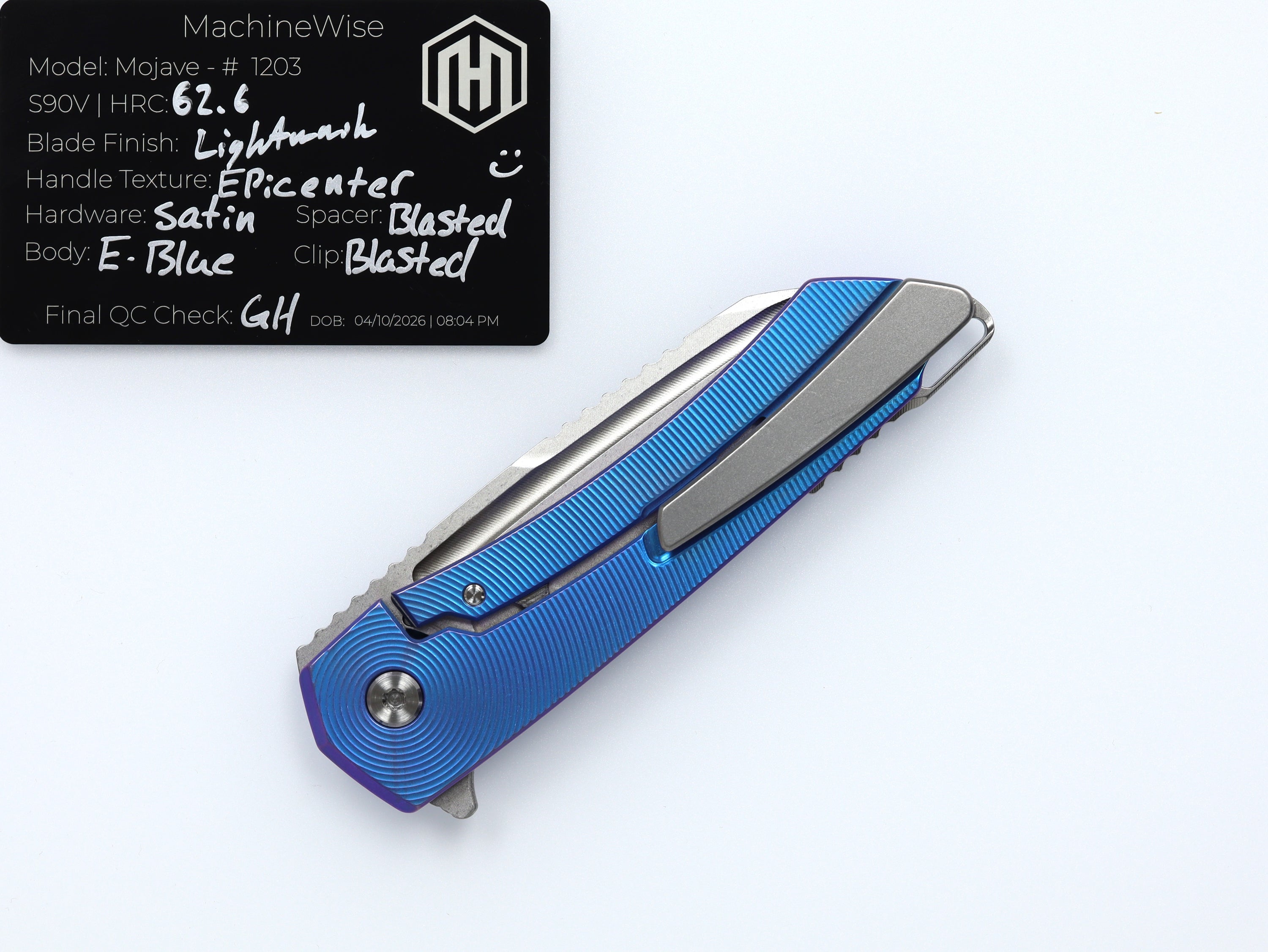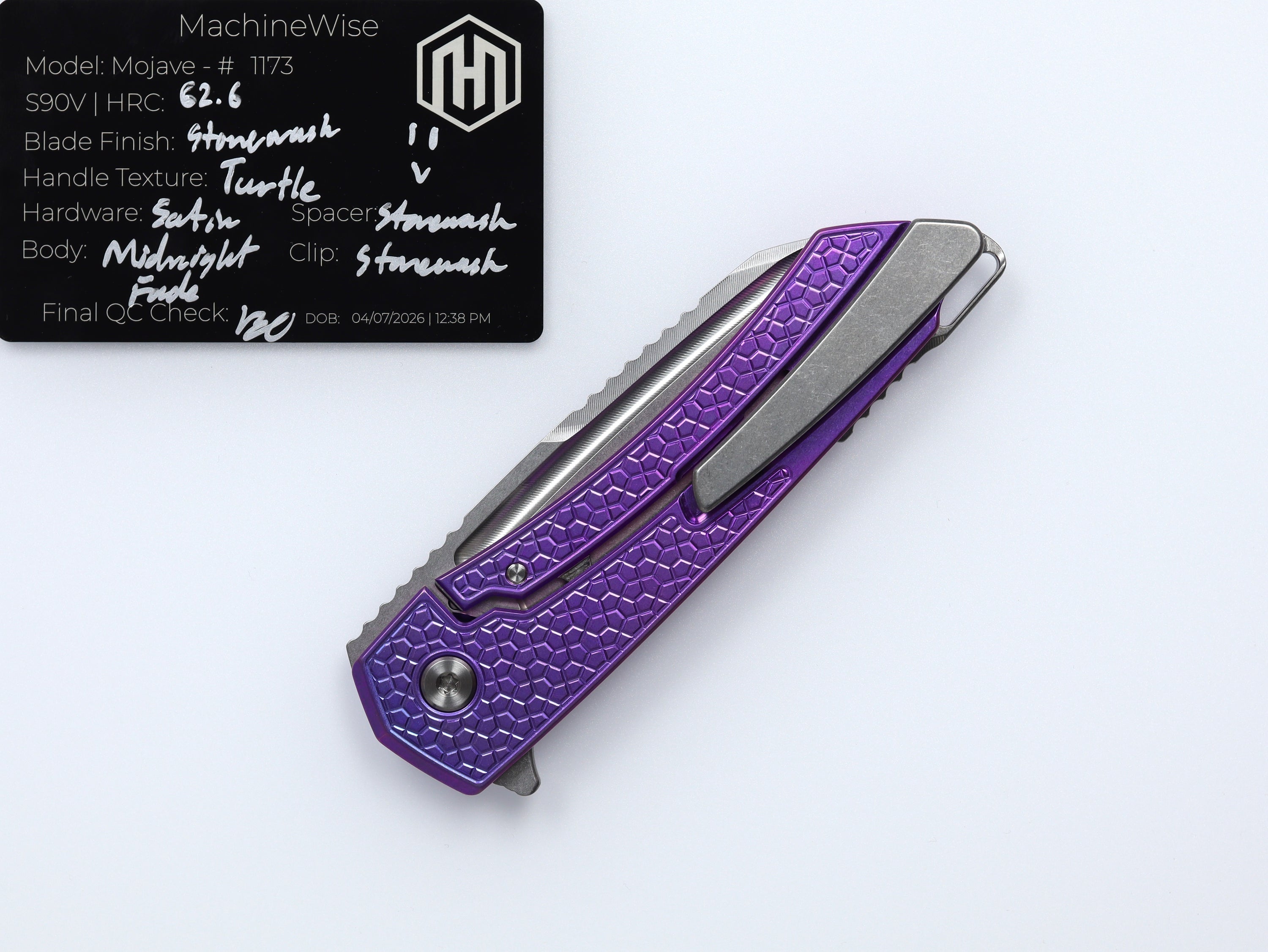 A button lock folder built in-house by the MachineWise team. Now available with DLC blades and skeletonized handles in the Custom Shop.