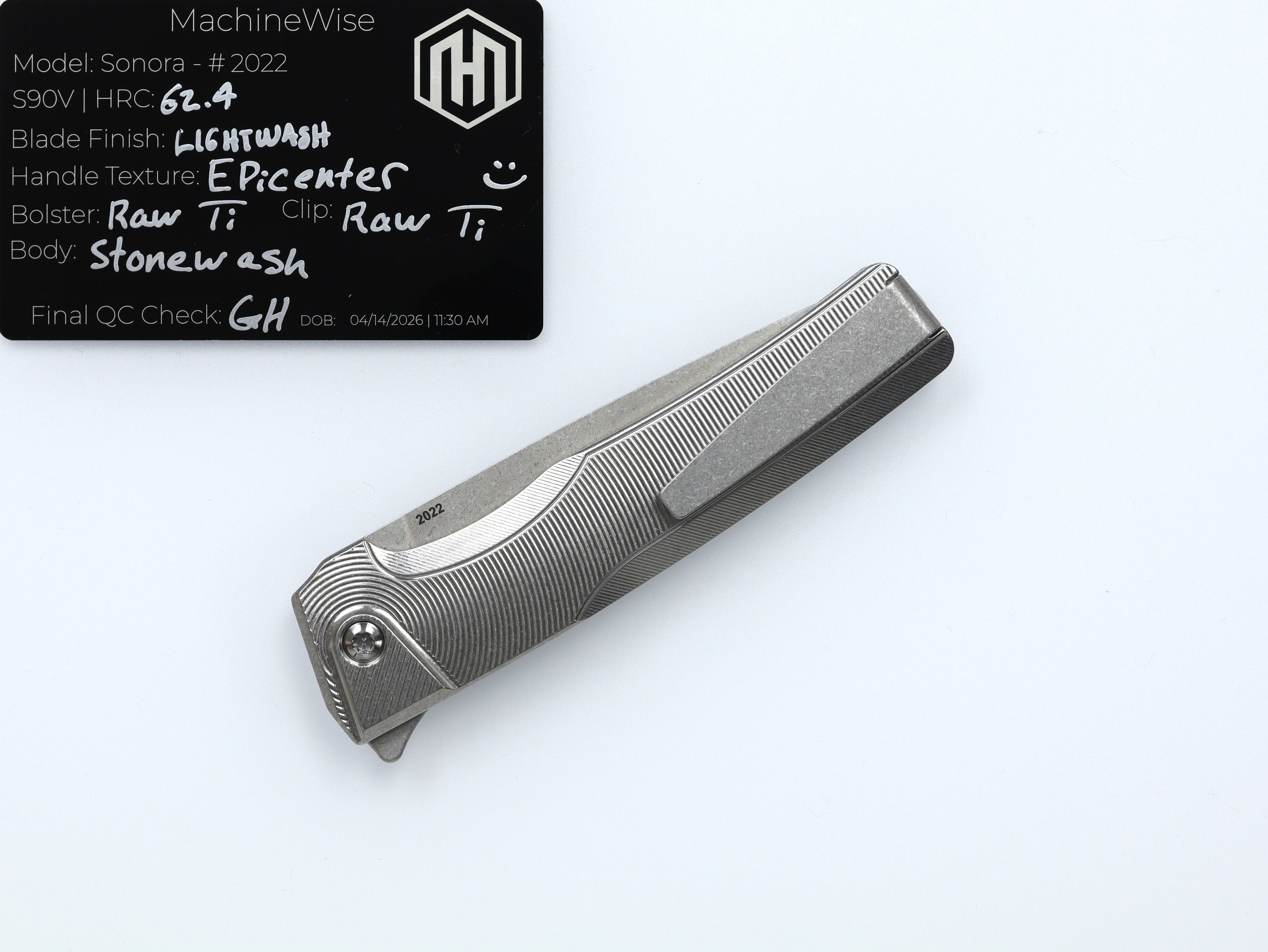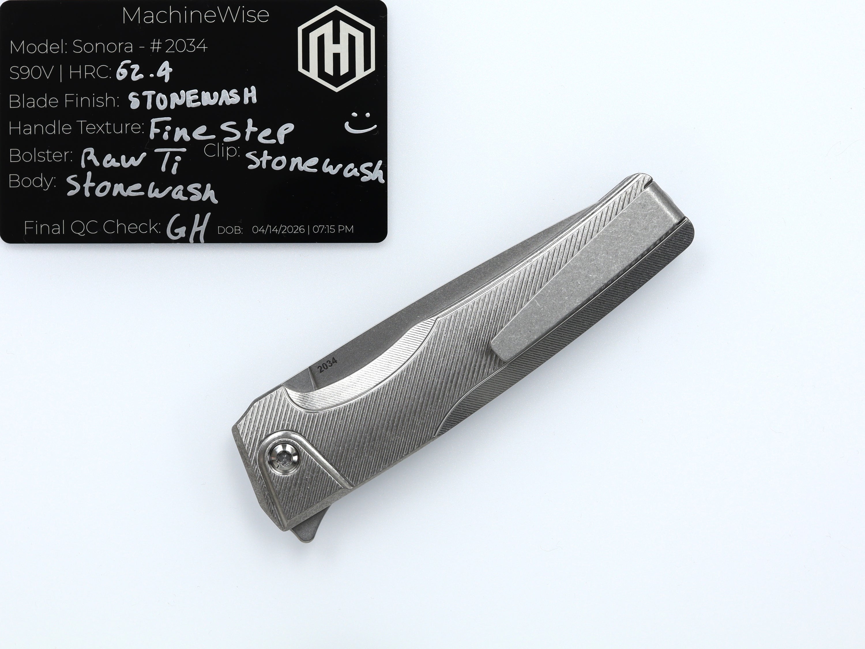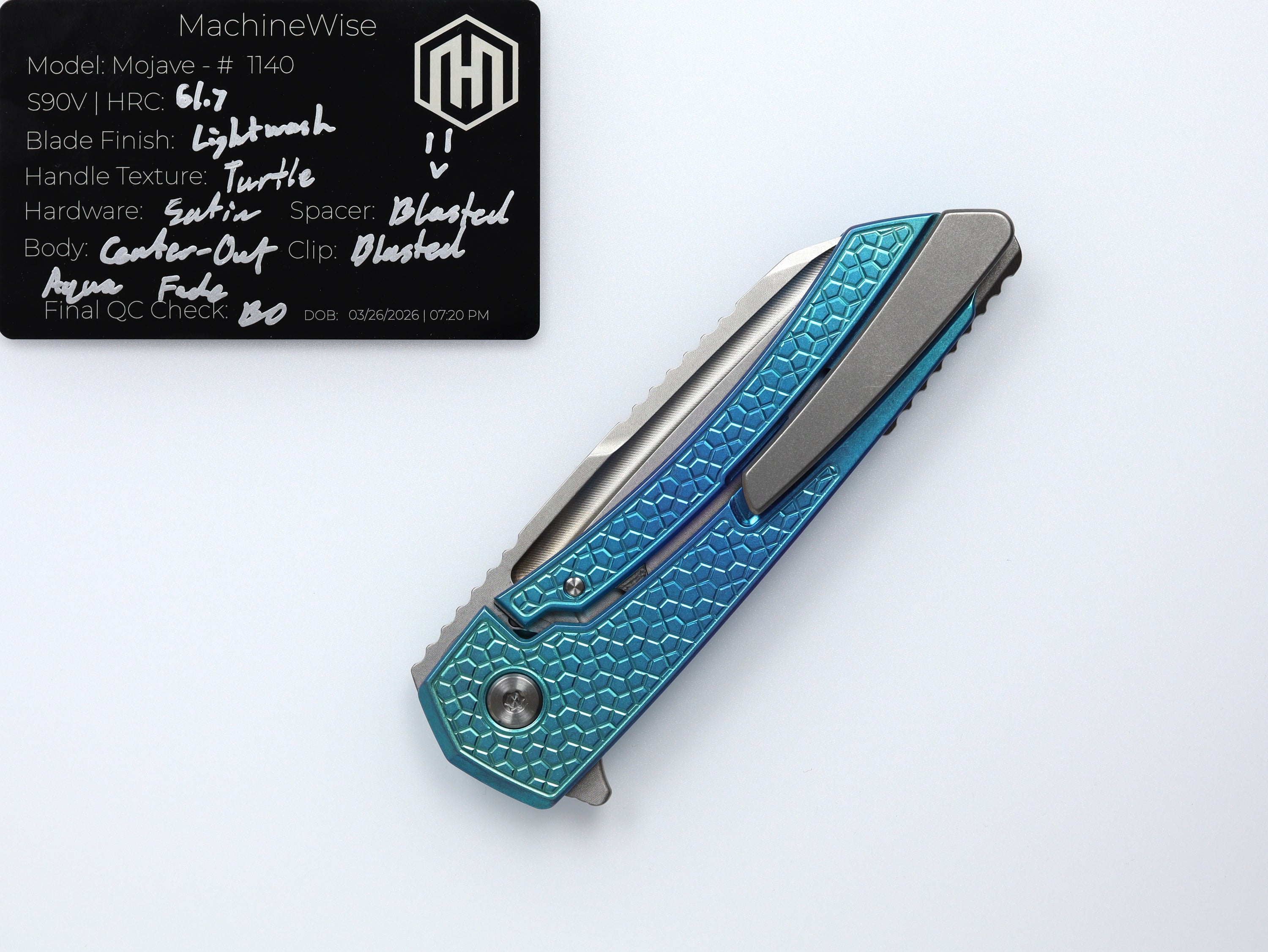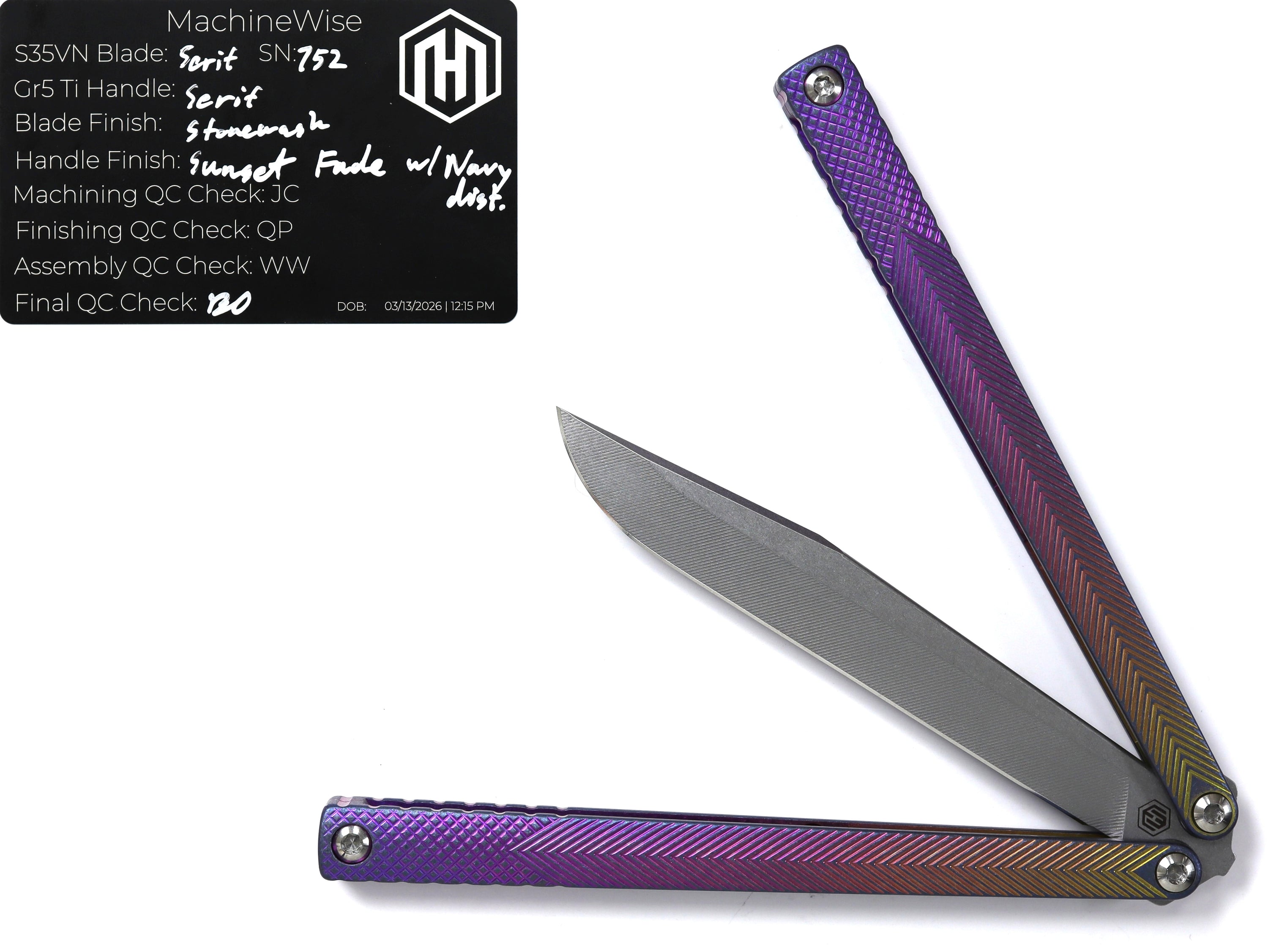 A button lock folder built in-house by the MachineWise team. Now available with DLC blades and skeletonized handles in the Custom Shop.