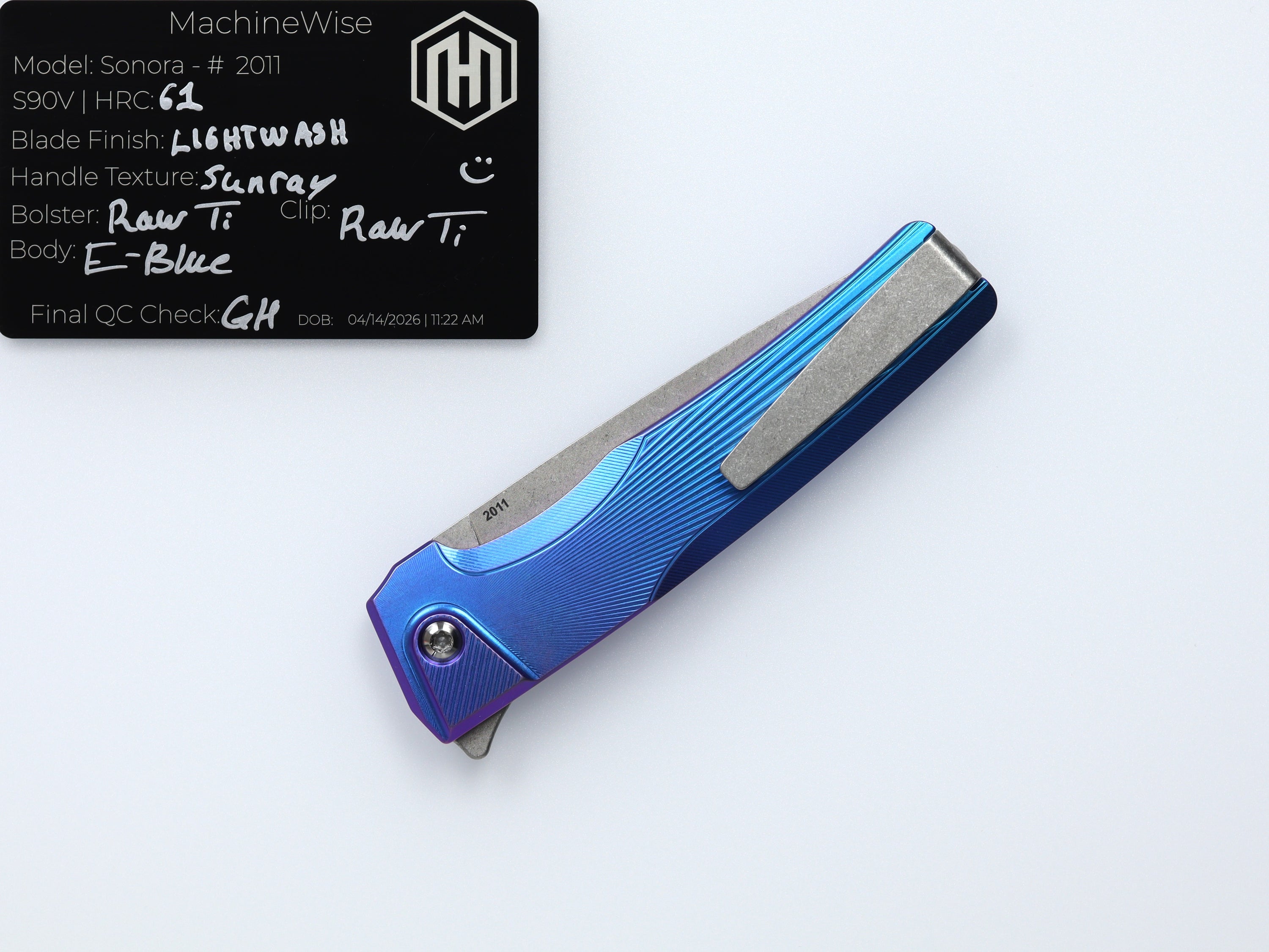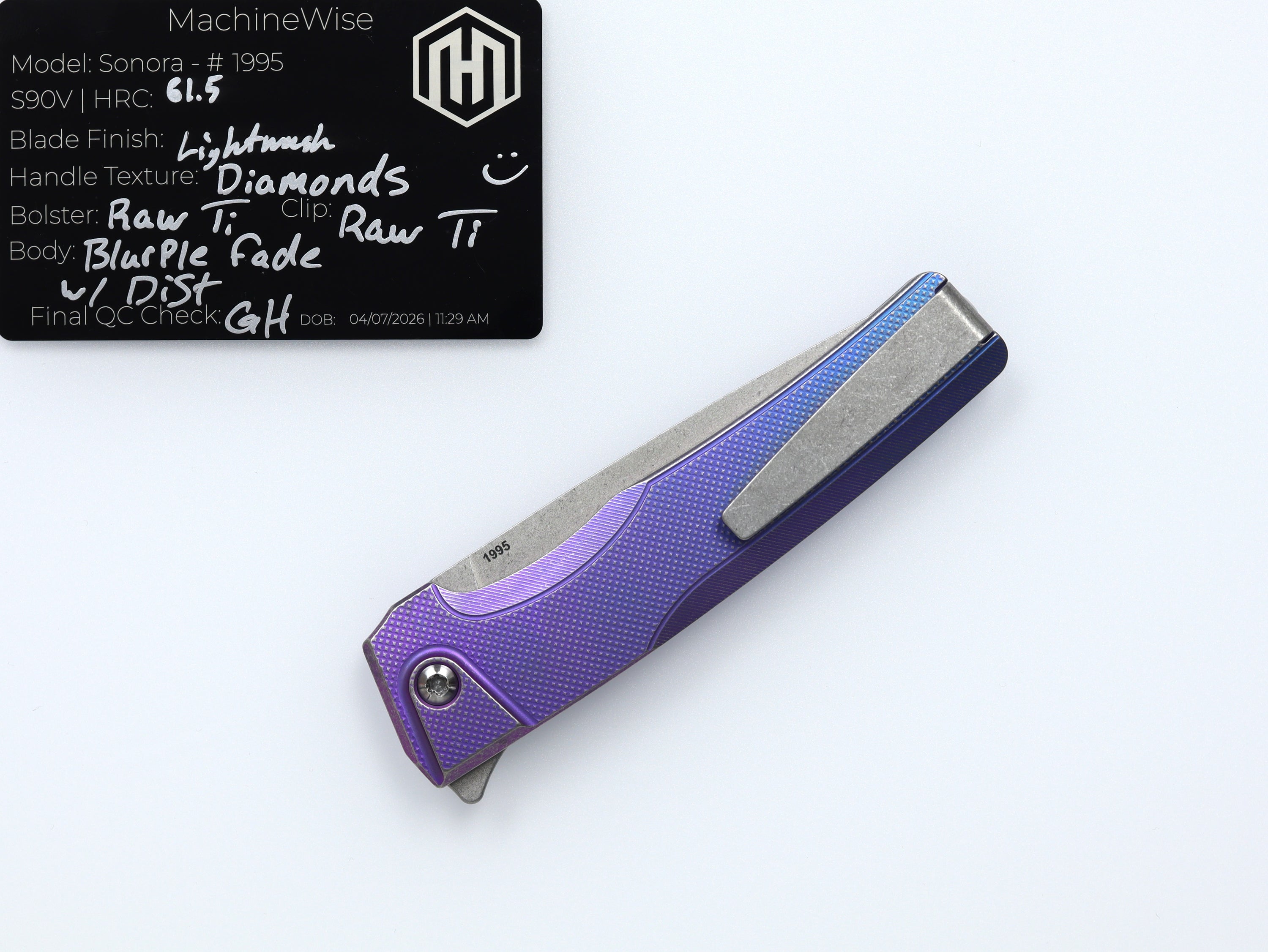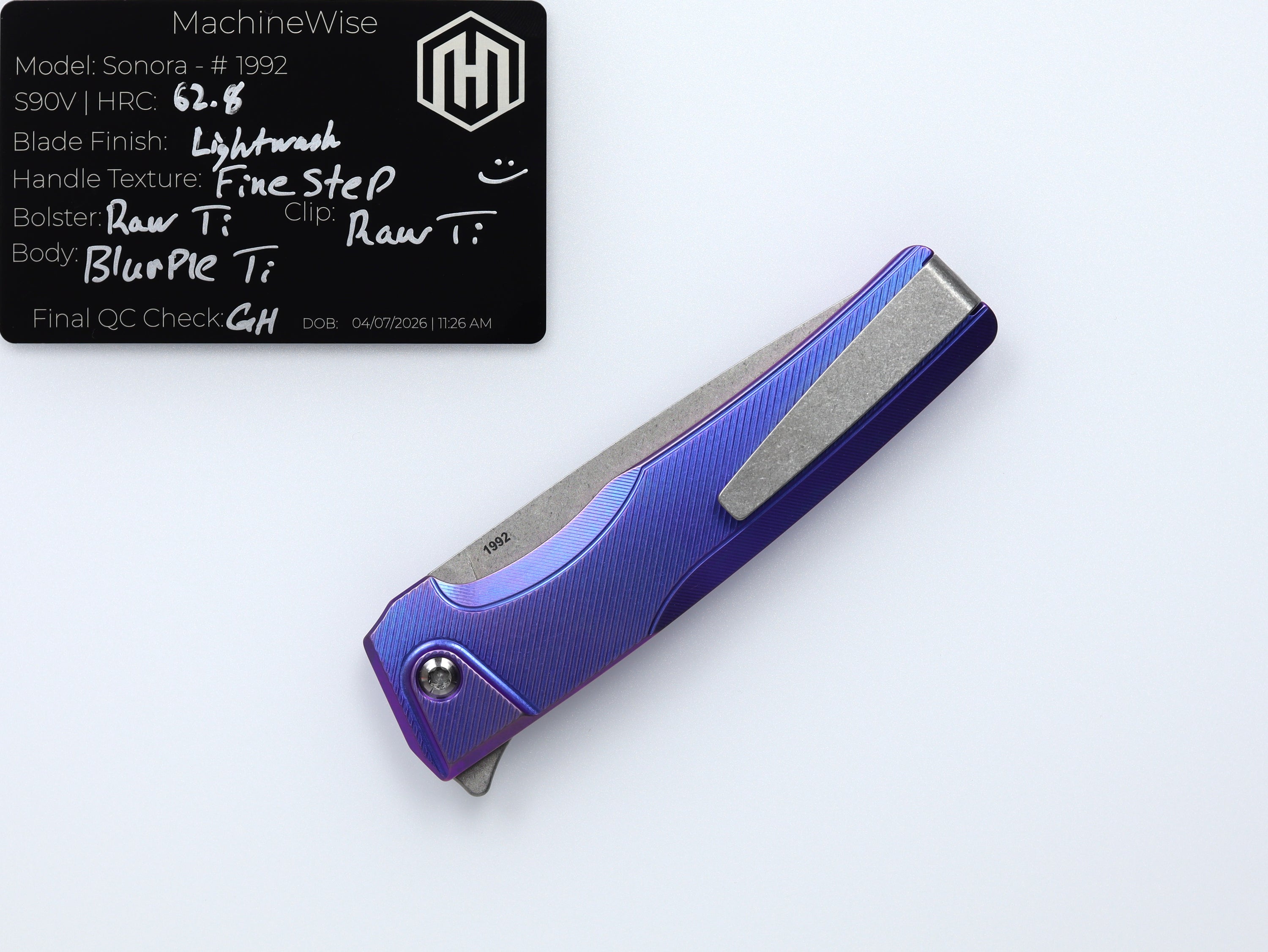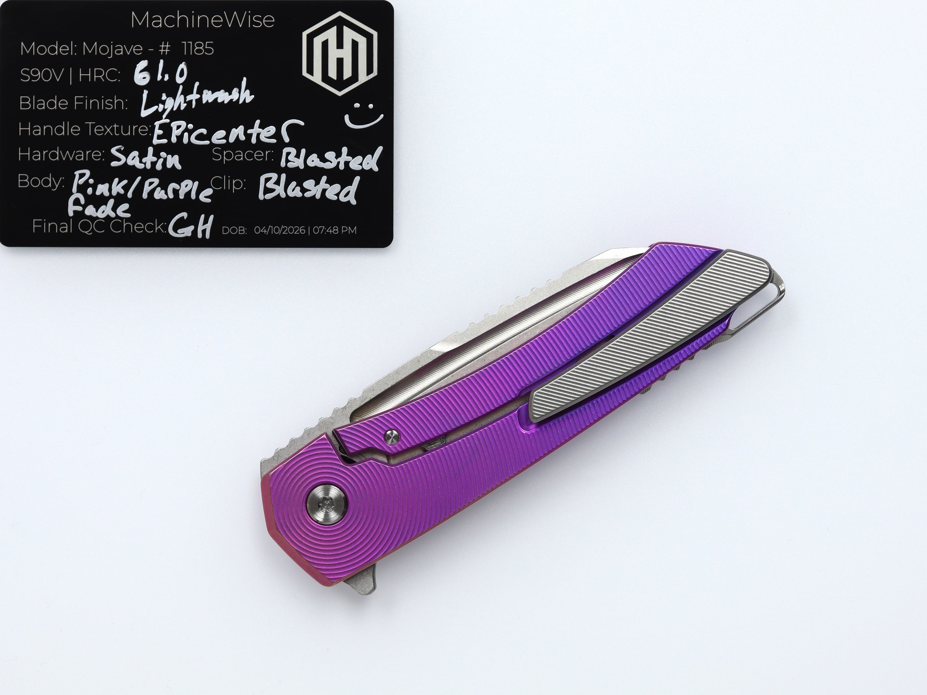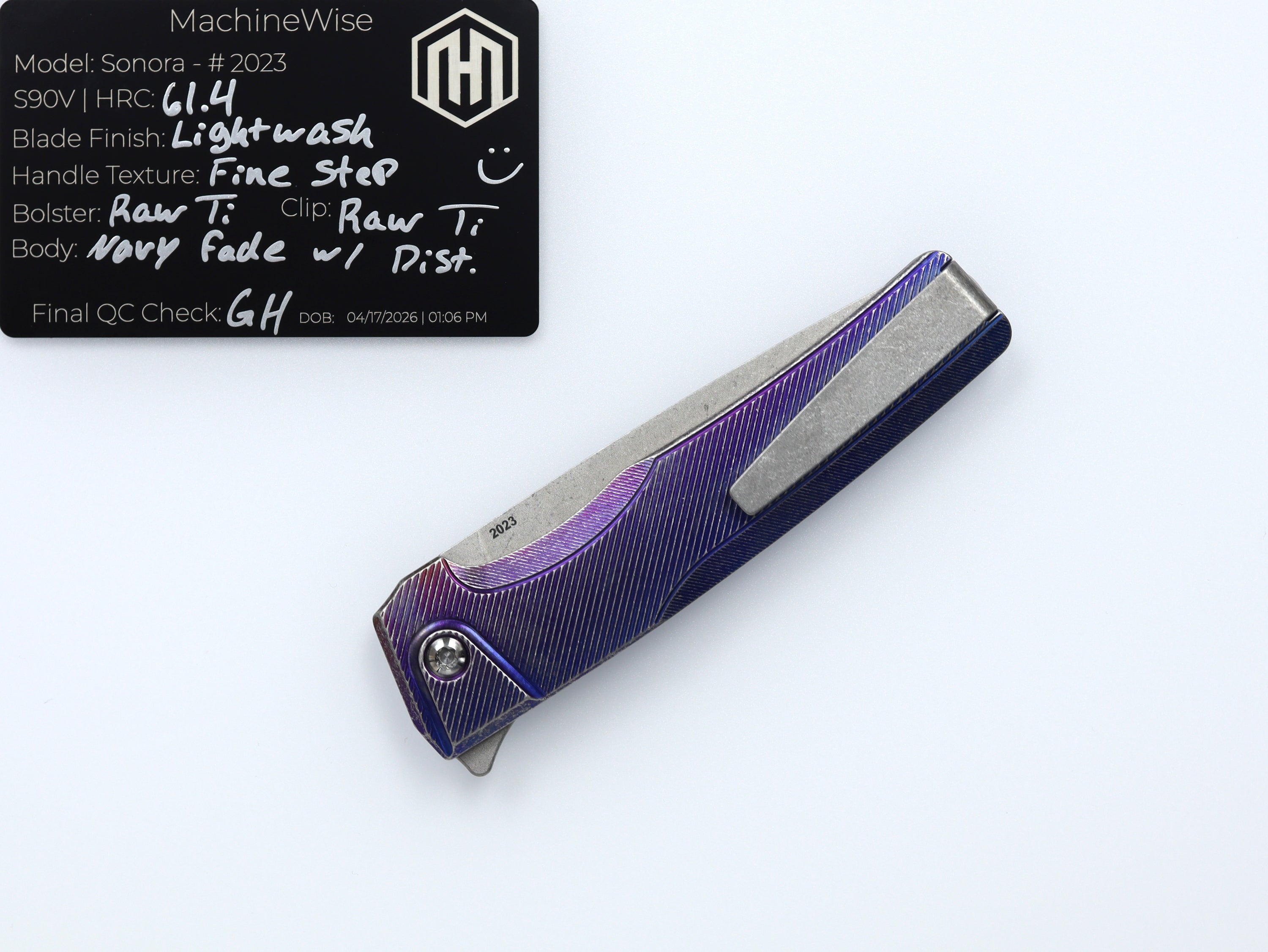 A button lock folder built in-house by the MachineWise team. Now available with DLC blades and skeletonized handles in the Custom Shop.