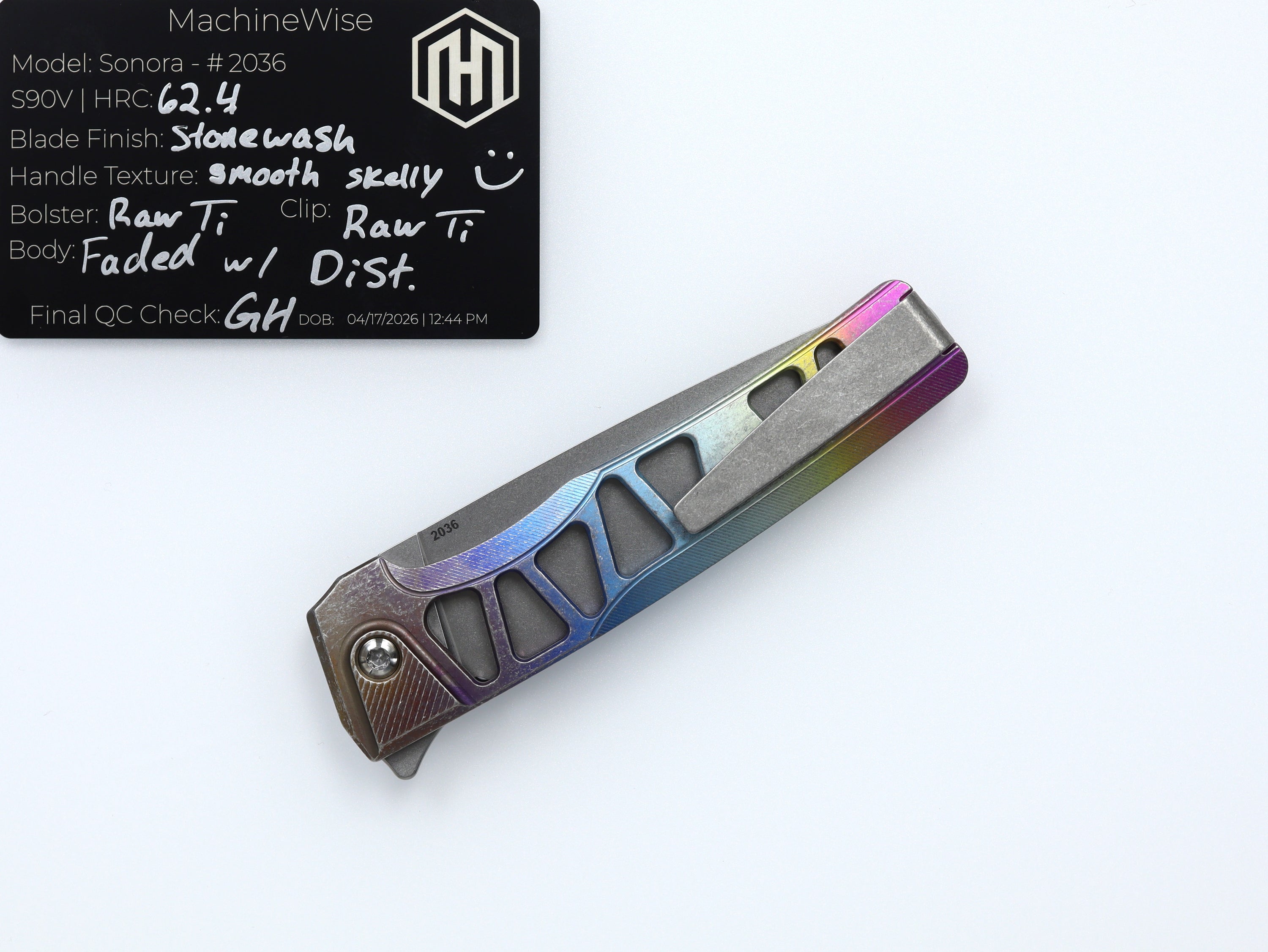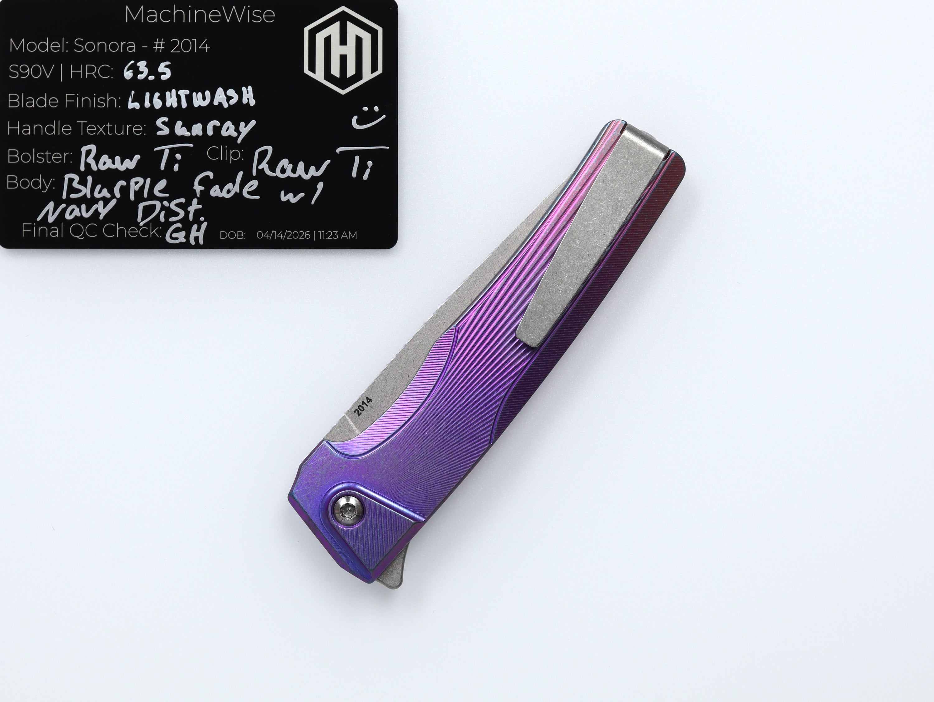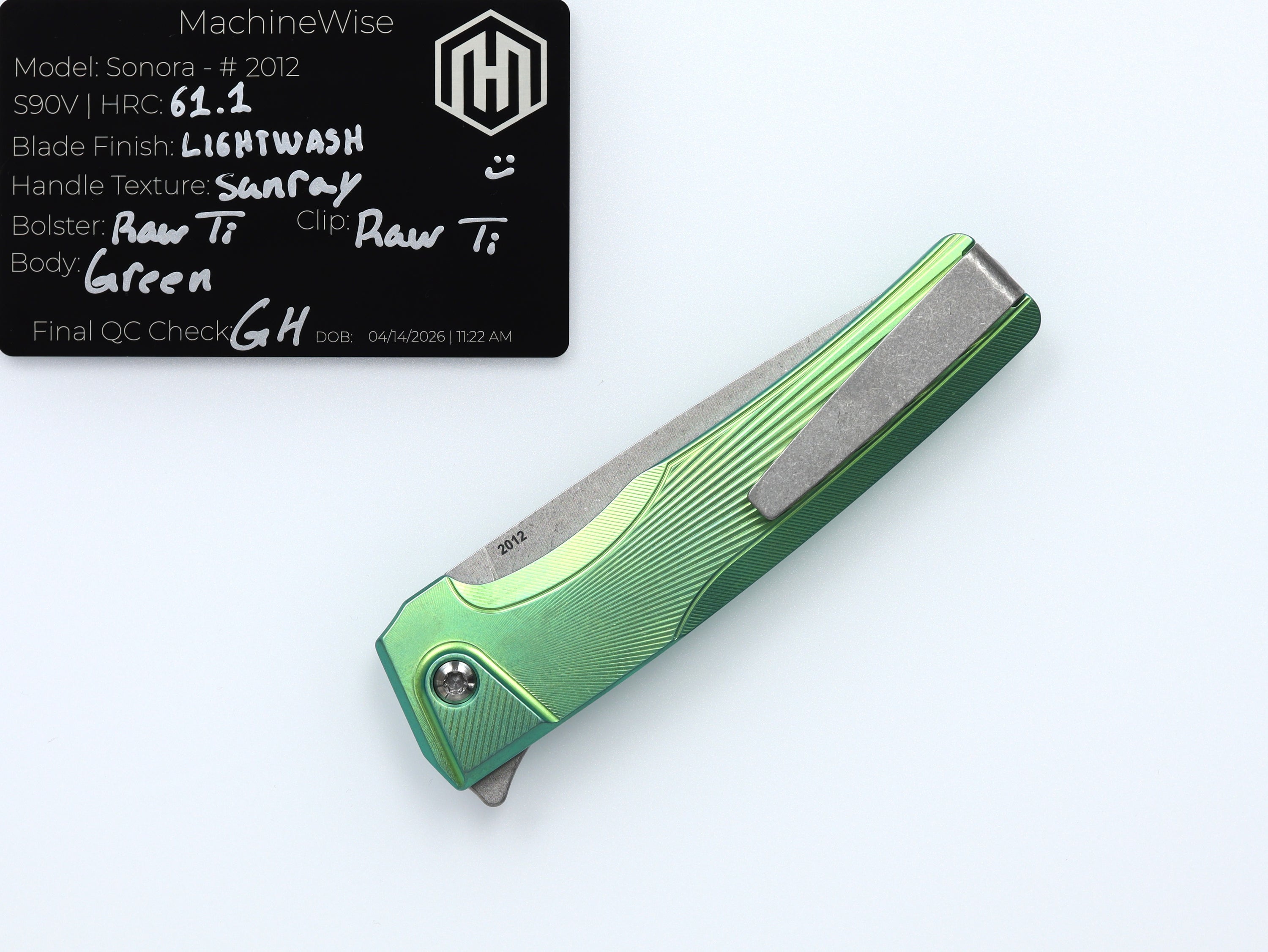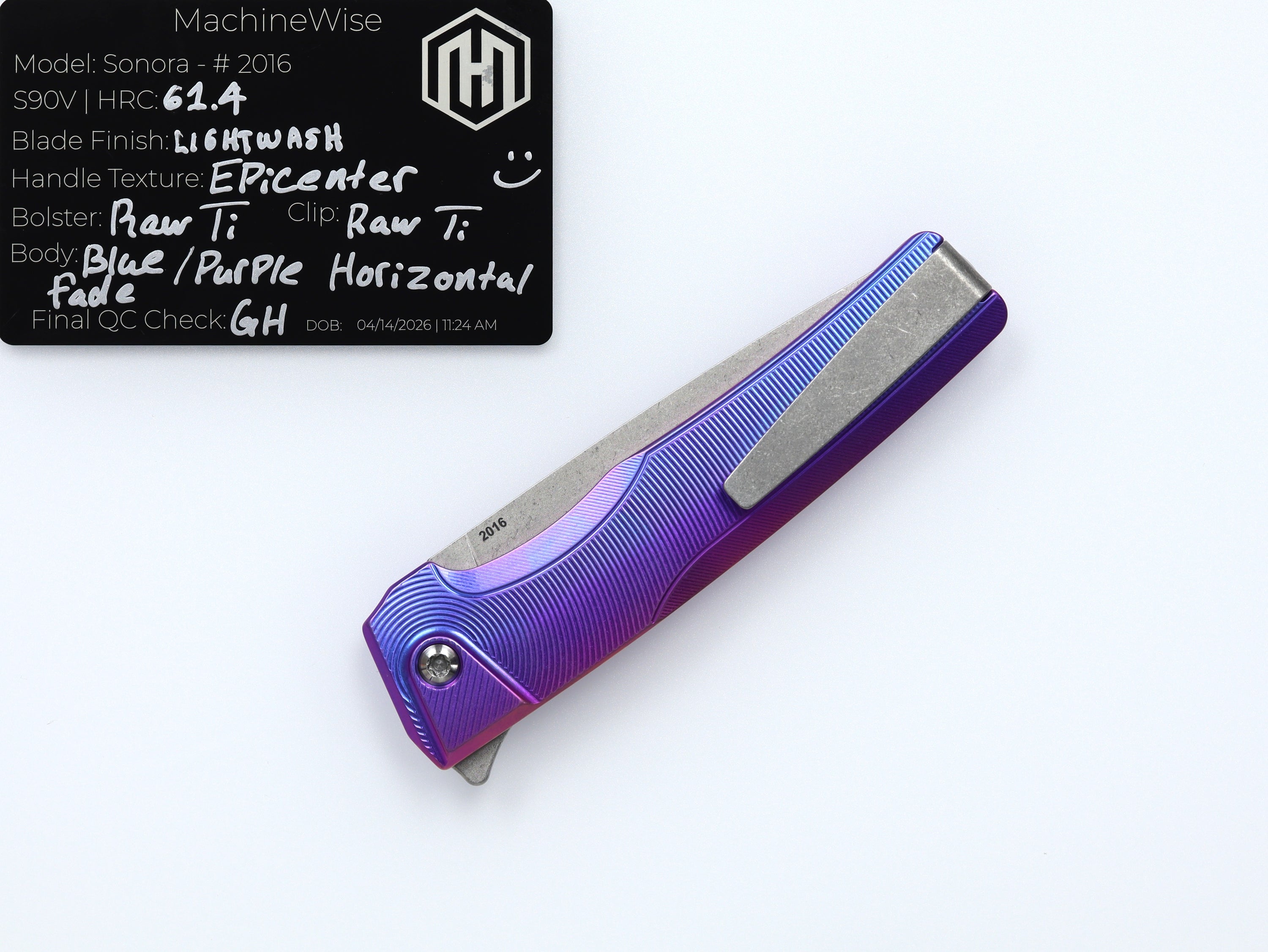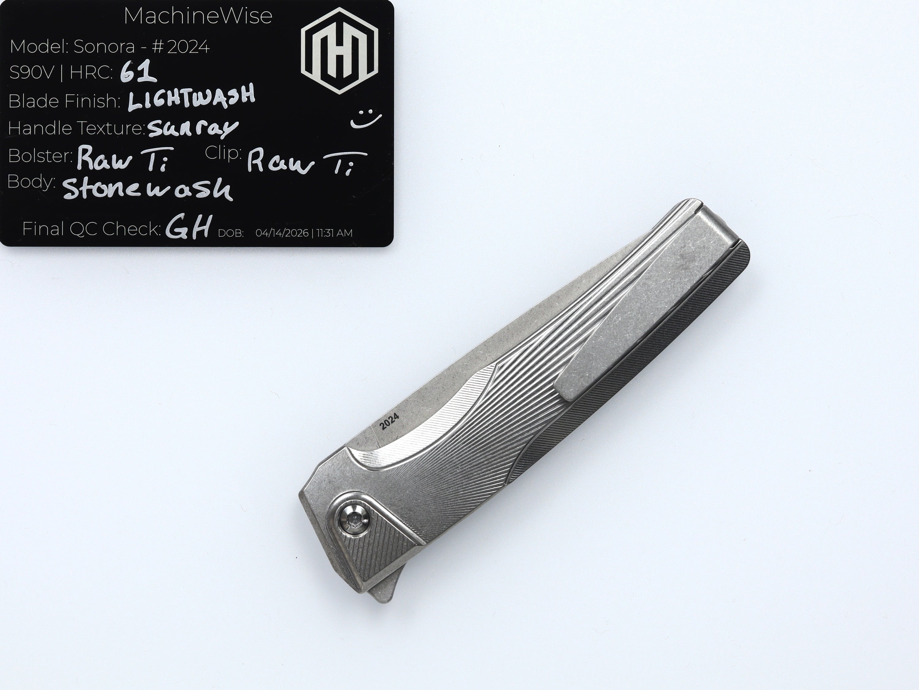 A button lock folder built in-house by the MachineWise team. Now available with DLC blades and skeletonized handles in the Custom Shop.
