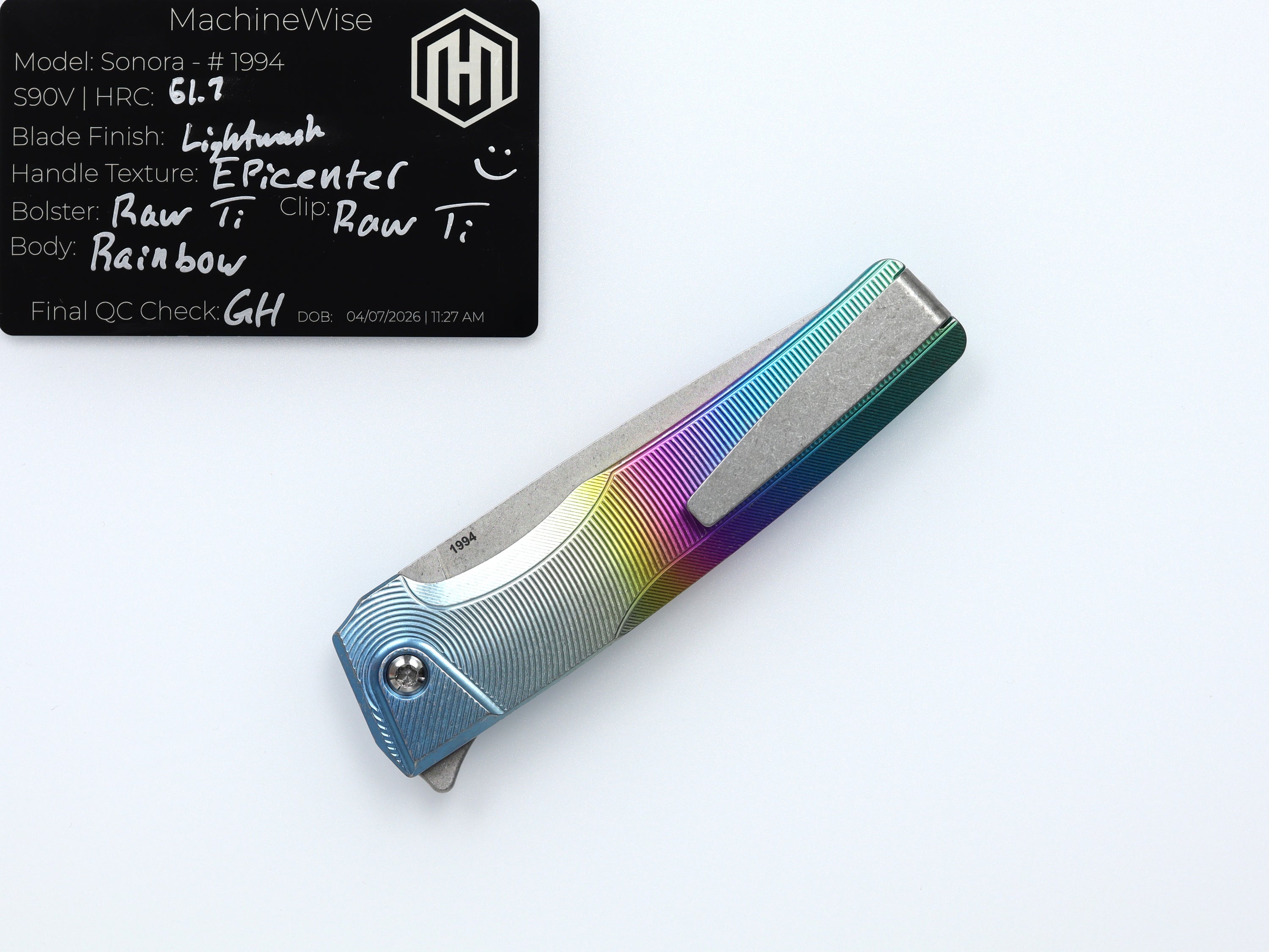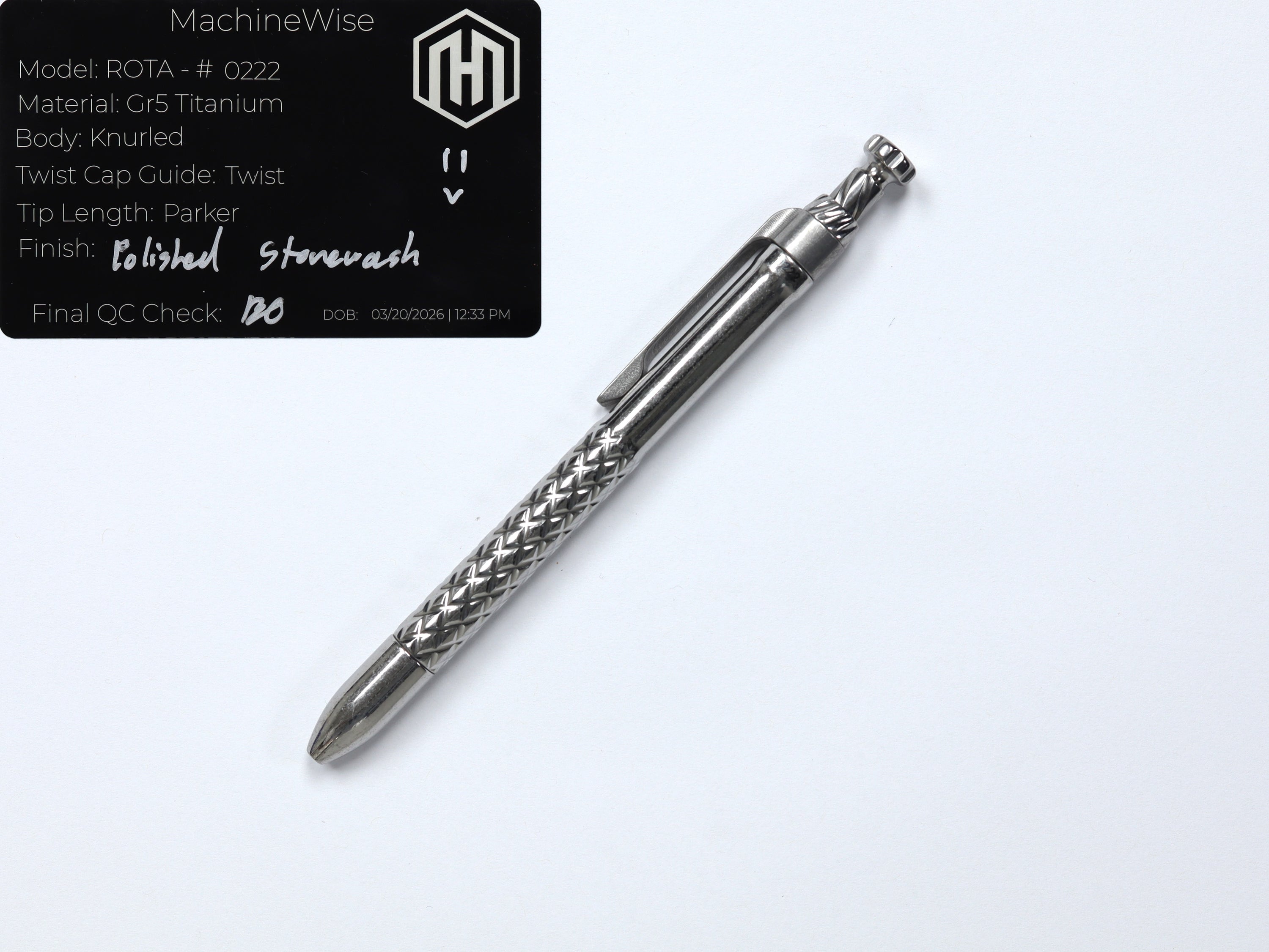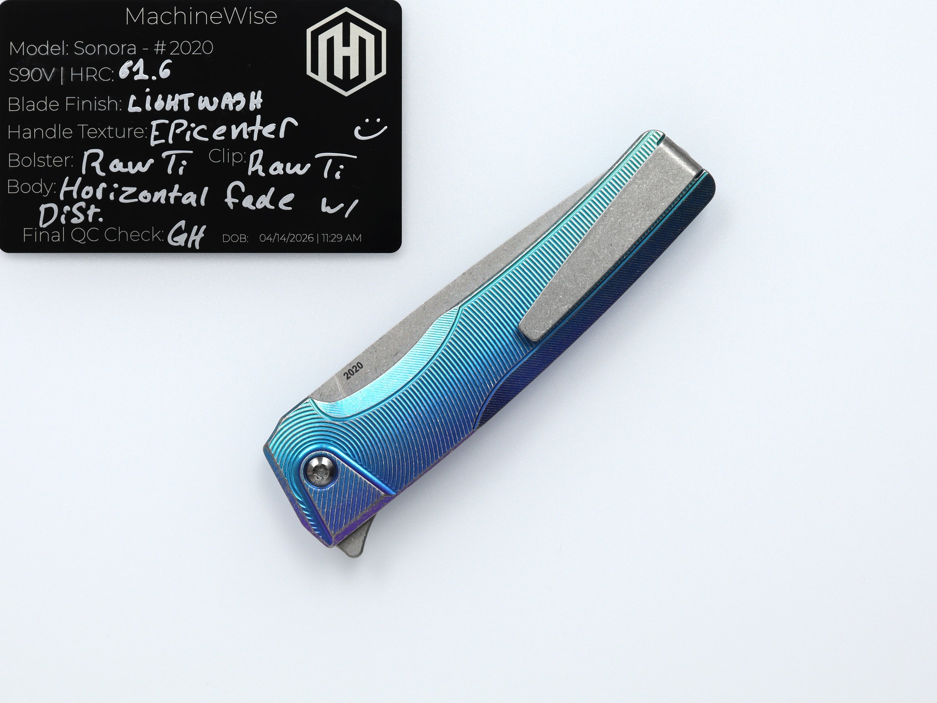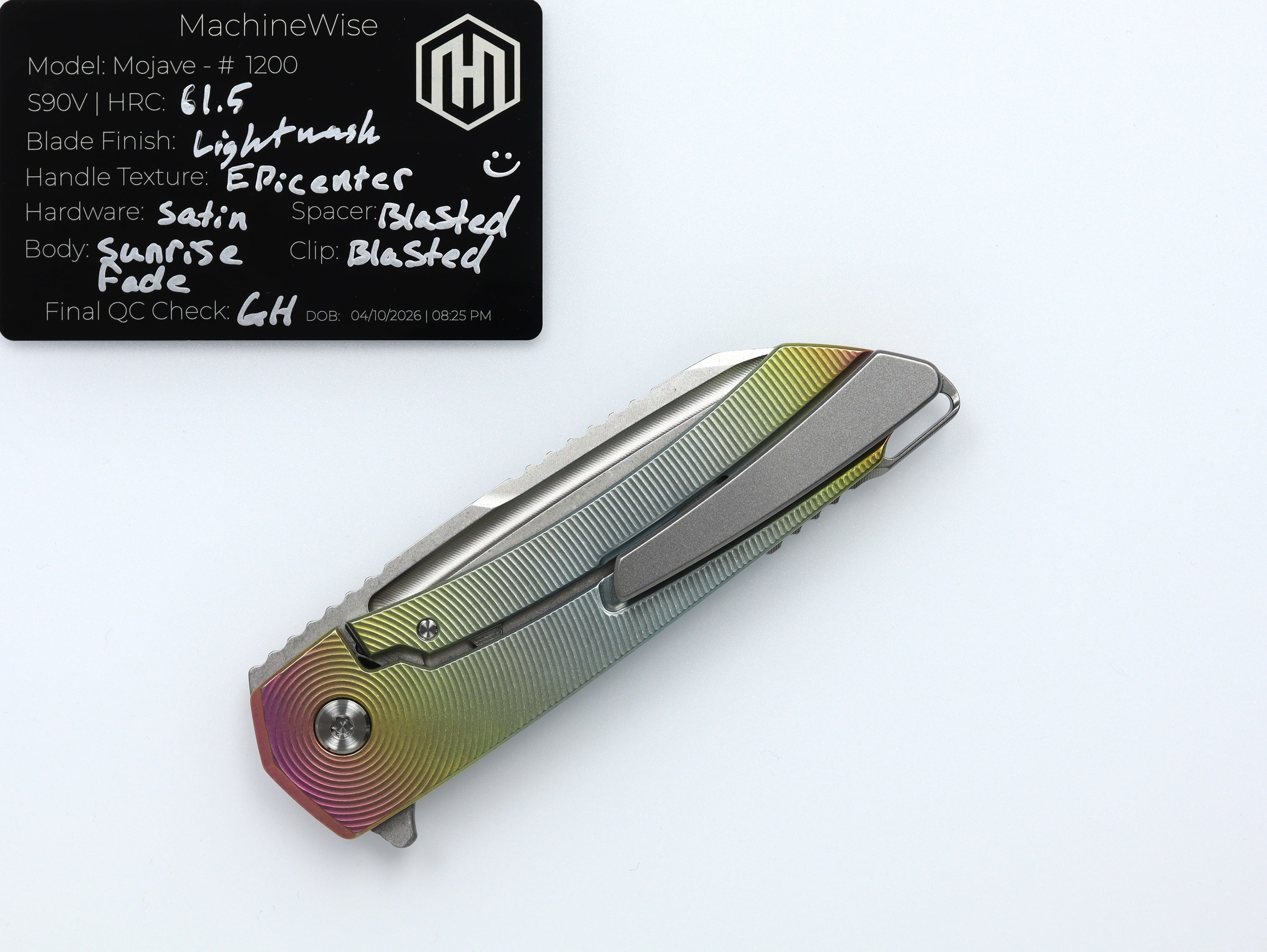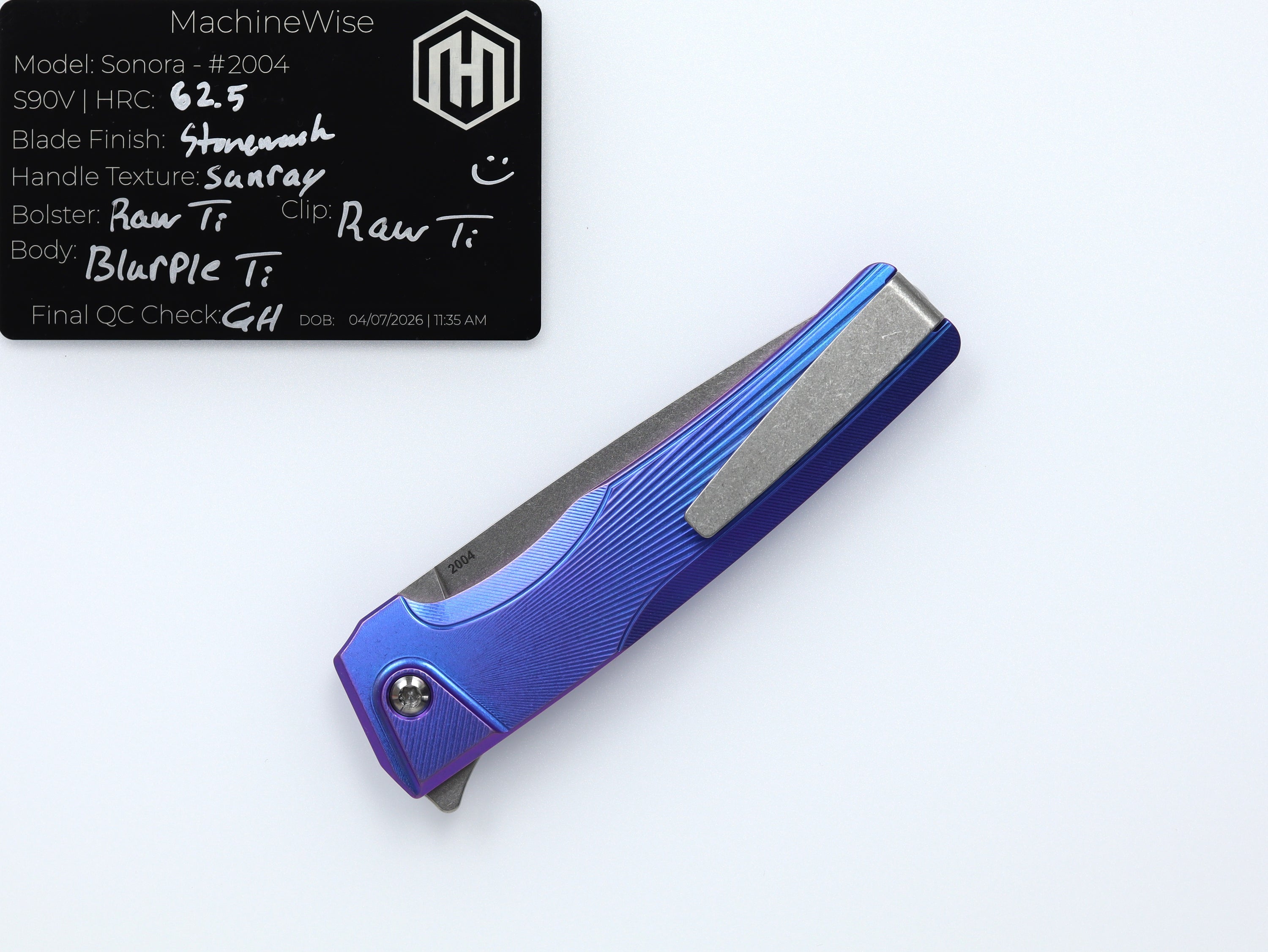 A button lock folder built in-house by the MachineWise team. Now available with DLC blades and skeletonized handles in the Custom Shop.