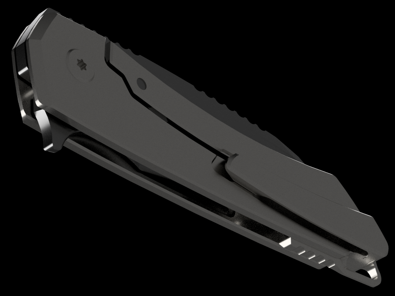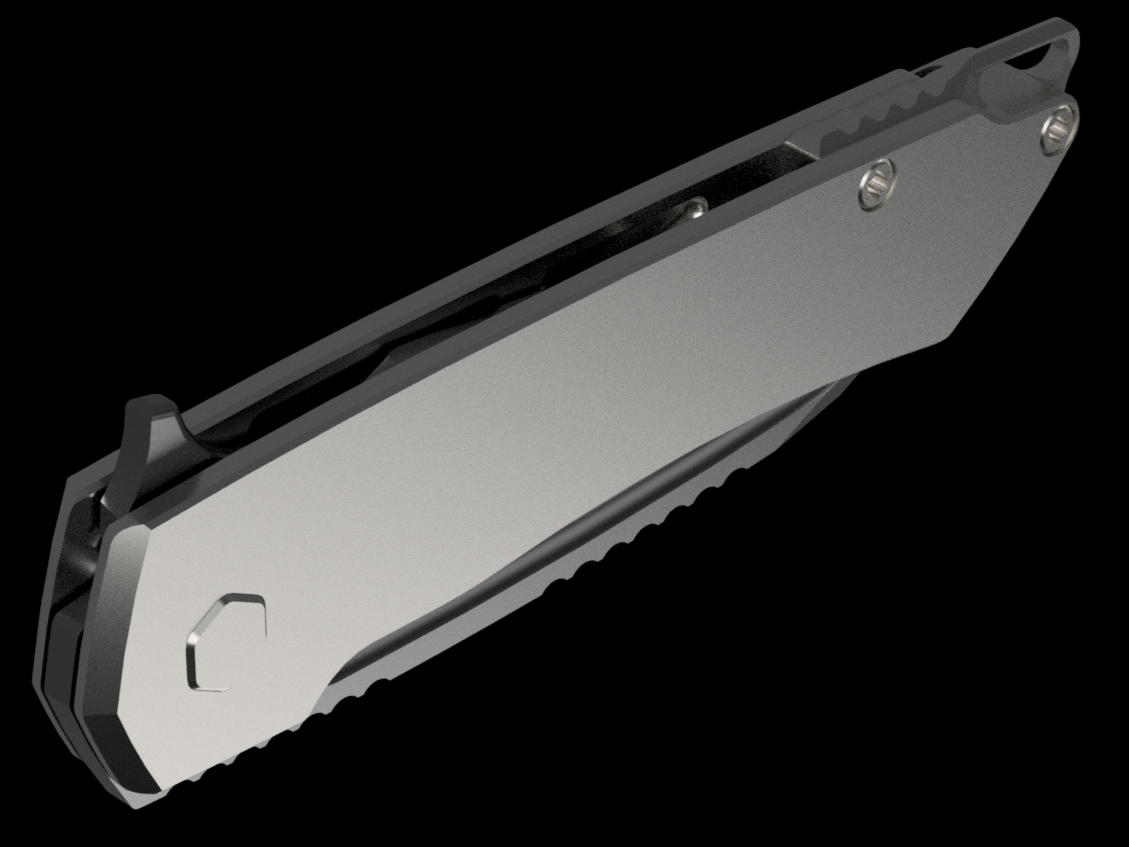 The Mojave is assembled with two slabs of titanium and a backspacer. This construction method allows us to flex our machining and design prowess.