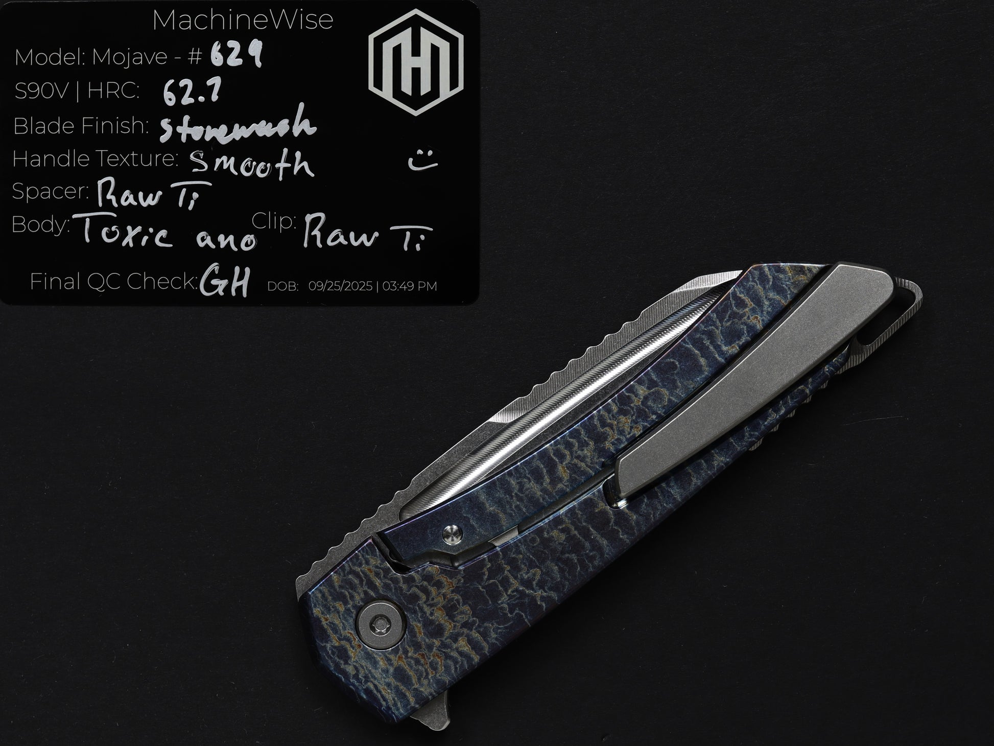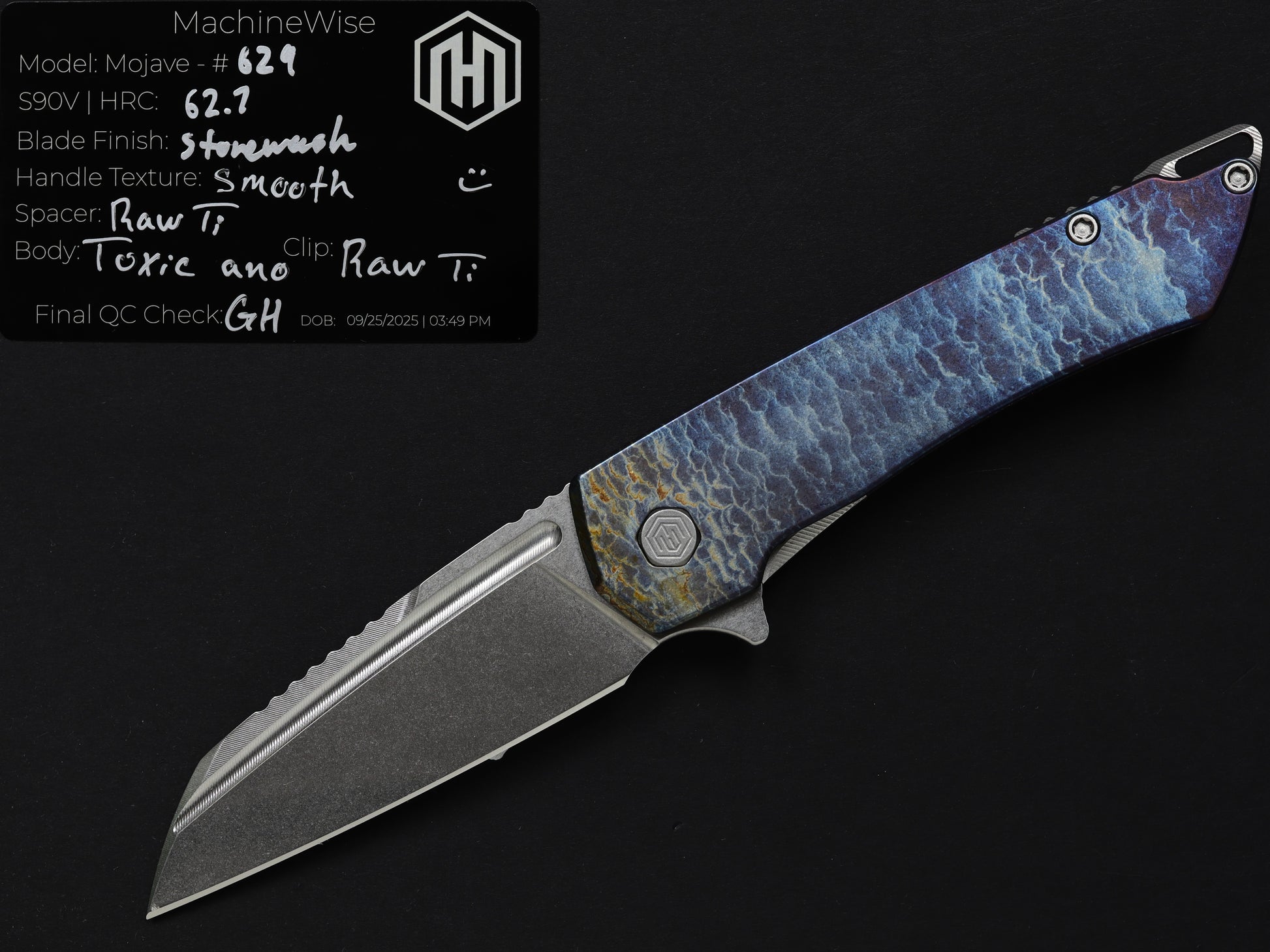 The Mojave is assembled with ceramic ball bearings, a first for MachineWise. This pivot allows for supered action and excellent functionality. In this space we felt that a bearing system would function better with the locking mechanism used.