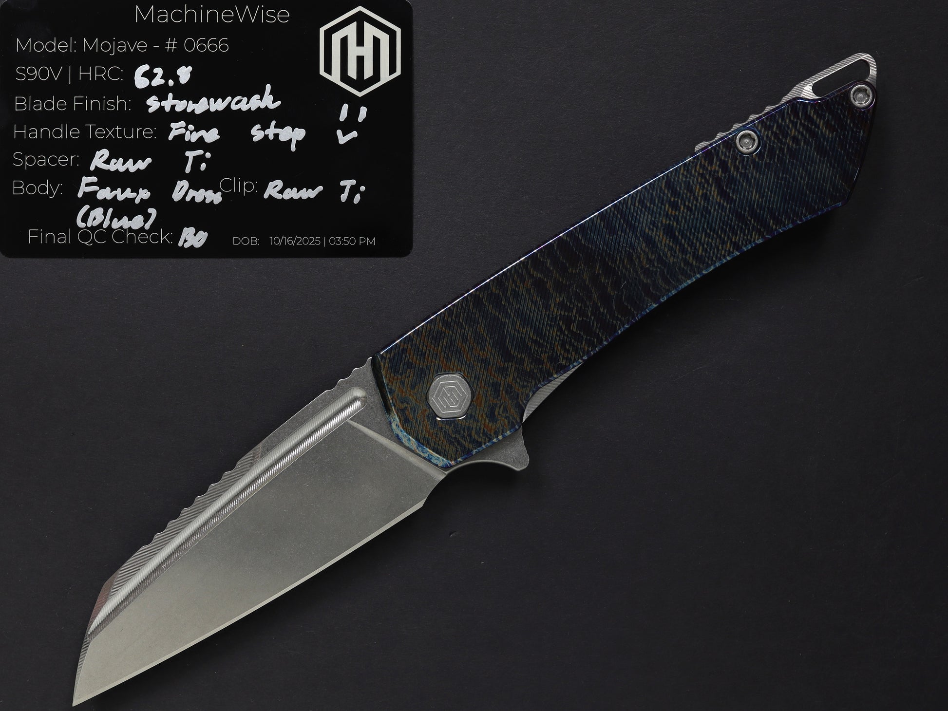 The Mojave is assembled with ceramic ball bearings, a first for MachineWise. This pivot allows for supered action and excellent functionality. In this space we felt that a bearing system would function better with the locking mechanism used.