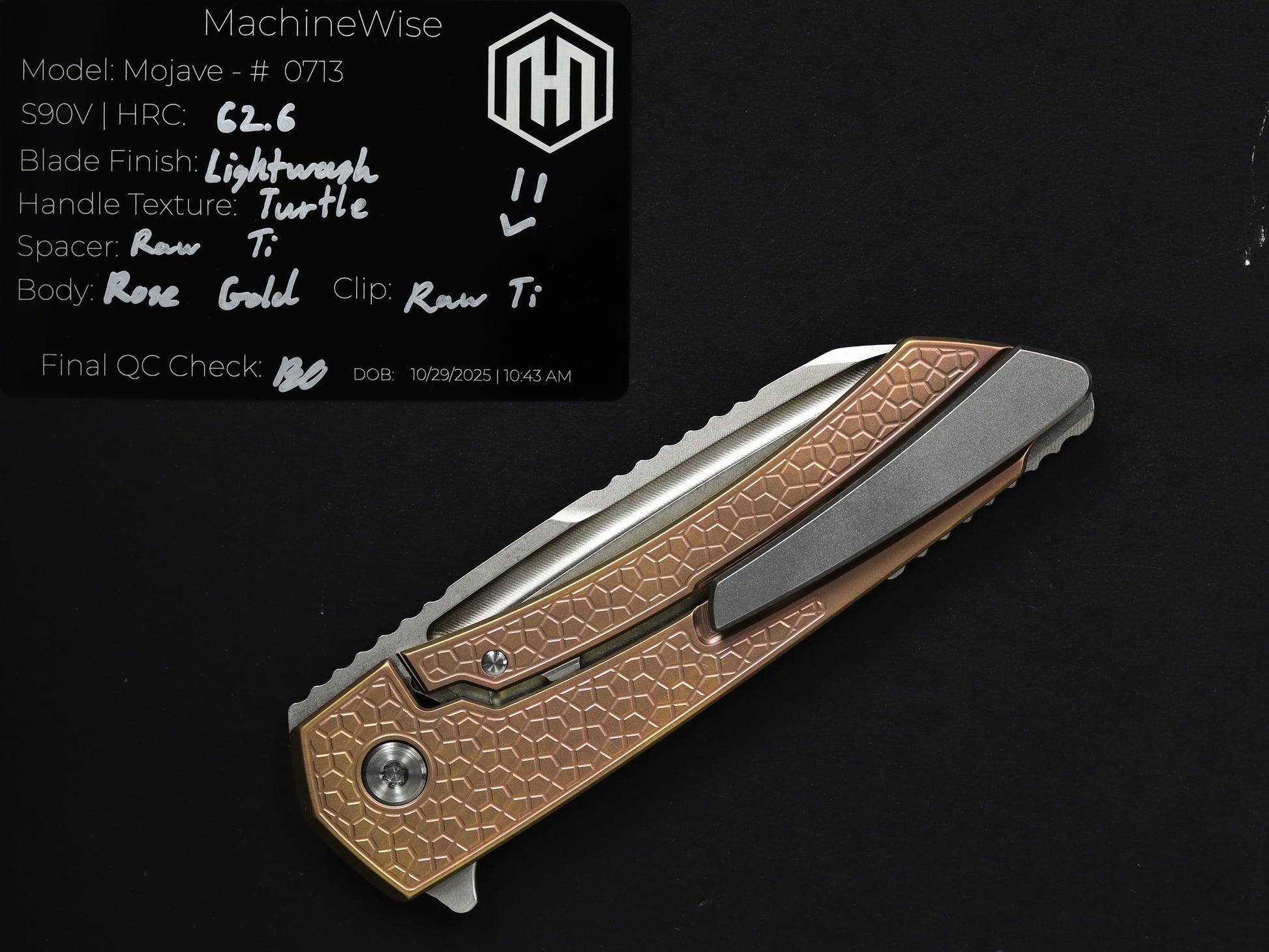 The Mojave is assembled with ceramic ball bearings, a first for MachineWise. This pivot allows for supered action and excellent functionality. In this space we felt that a bearing system would function better with the locking mechanism used.
