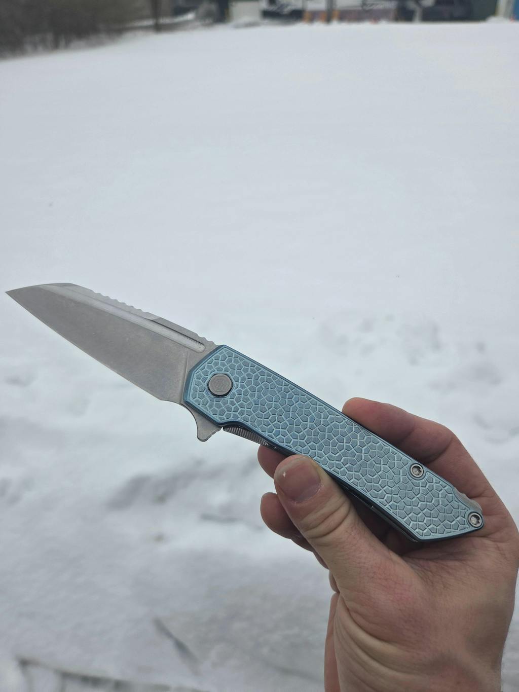 The Mojave is a titanium framelock folder built to feel substantial without weighing you down. It’s larger than the Sonora but thinner overall, so it carries light, sits flat in the pocket, and still shows up with presence.