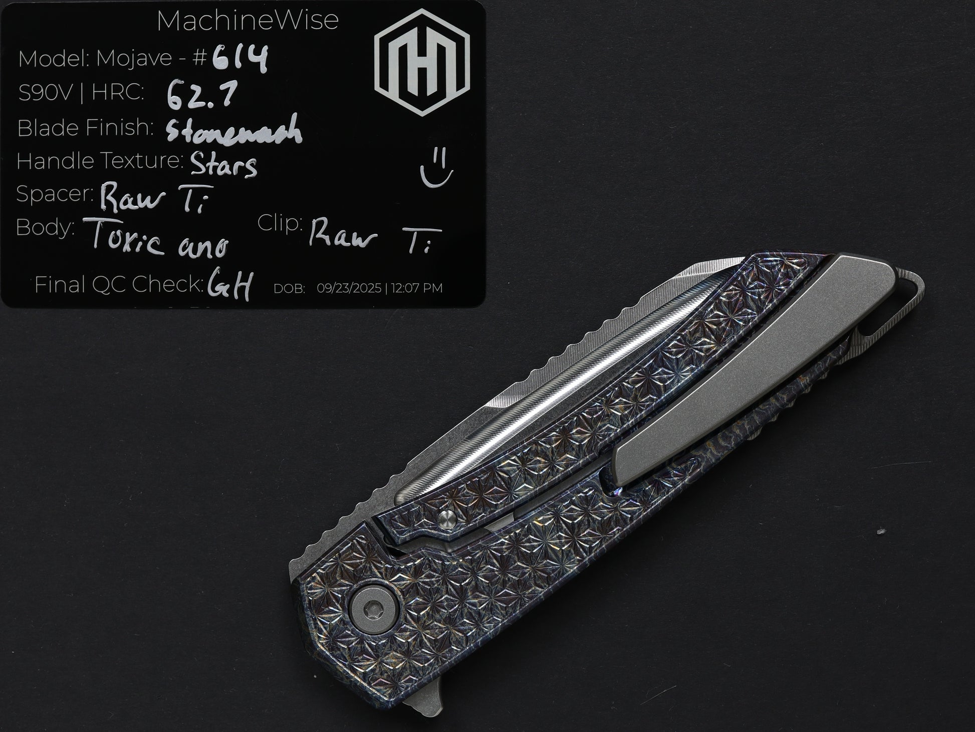The Mojave is assembled with ceramic ball bearings, a first for MachineWise. This pivot allows for supered action and excellent functionality. In this space we felt that a bearing system would function better with the locking mechanism used.